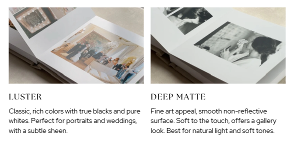 Step 1: Album size(s) w/ Paper Preference (luster vs. matte)